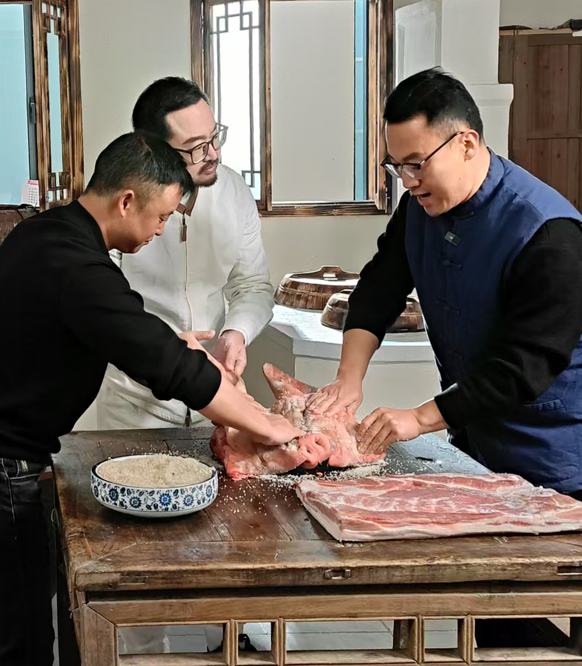 2024年12月河南卫视中国有好菜栏目摄制组来公司拍摄腊味的制作