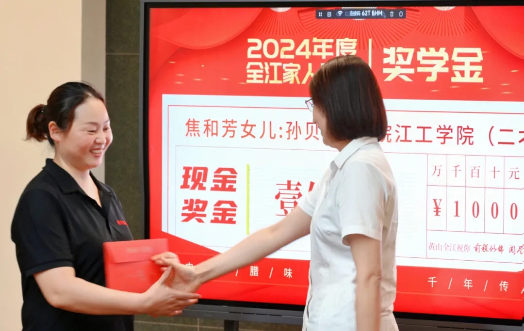 8月23日,全江腊味继上次发放奖学金后,再次为全江家人带来一份惊喜——又一名奖学金发放。
