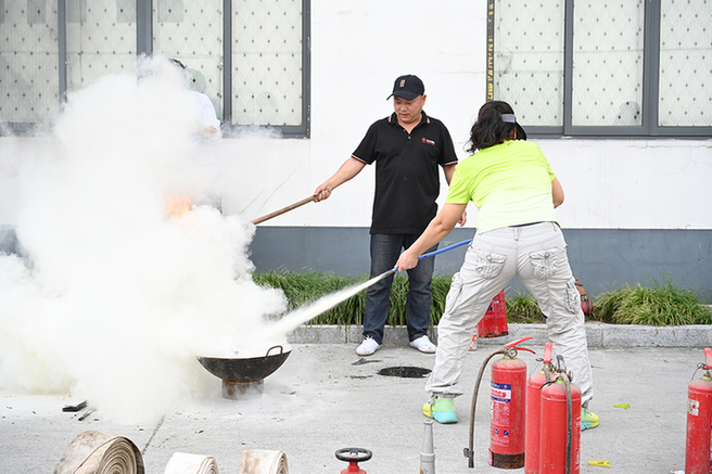 在这次培训中,来自机修部门的周师傅向在场的所有员工详细地讲解了使用灭火器的精确步骤,并亲自进行了操作演示:首先,他示范了如何正确提起灭火器;其次,展示了如何拔除保险销;然后是紧握喷嘴前端,准确对准火源底部;最后,强调了需用力按压喷射阀的动作要领,随后,他还向大家演示了消防栓的正确使用方法,并指导参加培训的人员亲自实践操作灭火器和消防栓。