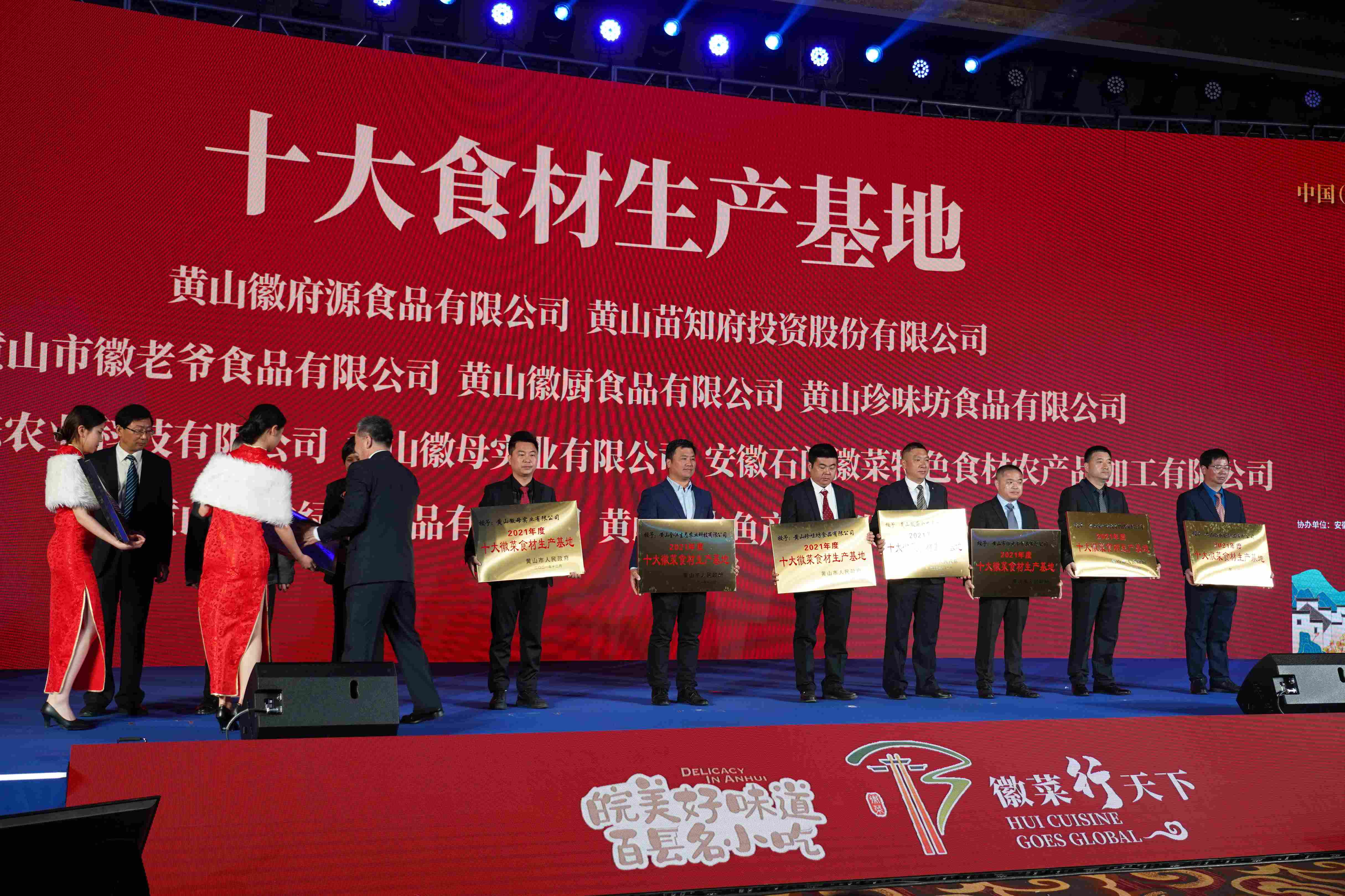 黄山全江生态农业科技有限公司董事长江礼明出席开幕式,并荣登“徽菜四大掌柜”,并和徽州臭鳜鱼、黄山笋、毛豆腐产业领头人联手推荐徽菜,发布“徽菜行天下”产业宣言;全江腊味在此次盛会上荣获黄山市人民政府颁发的“十大食材生产基地”称号。