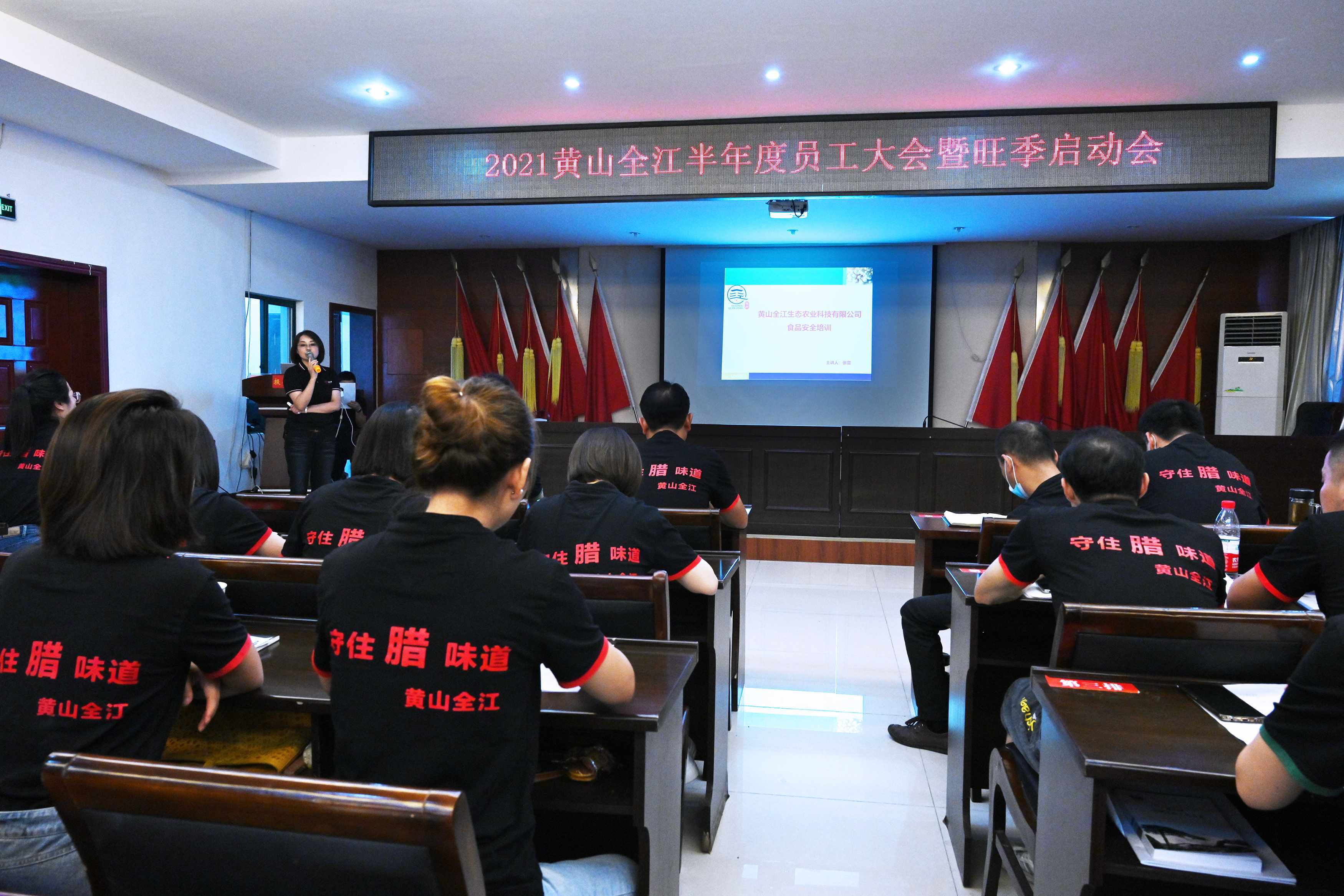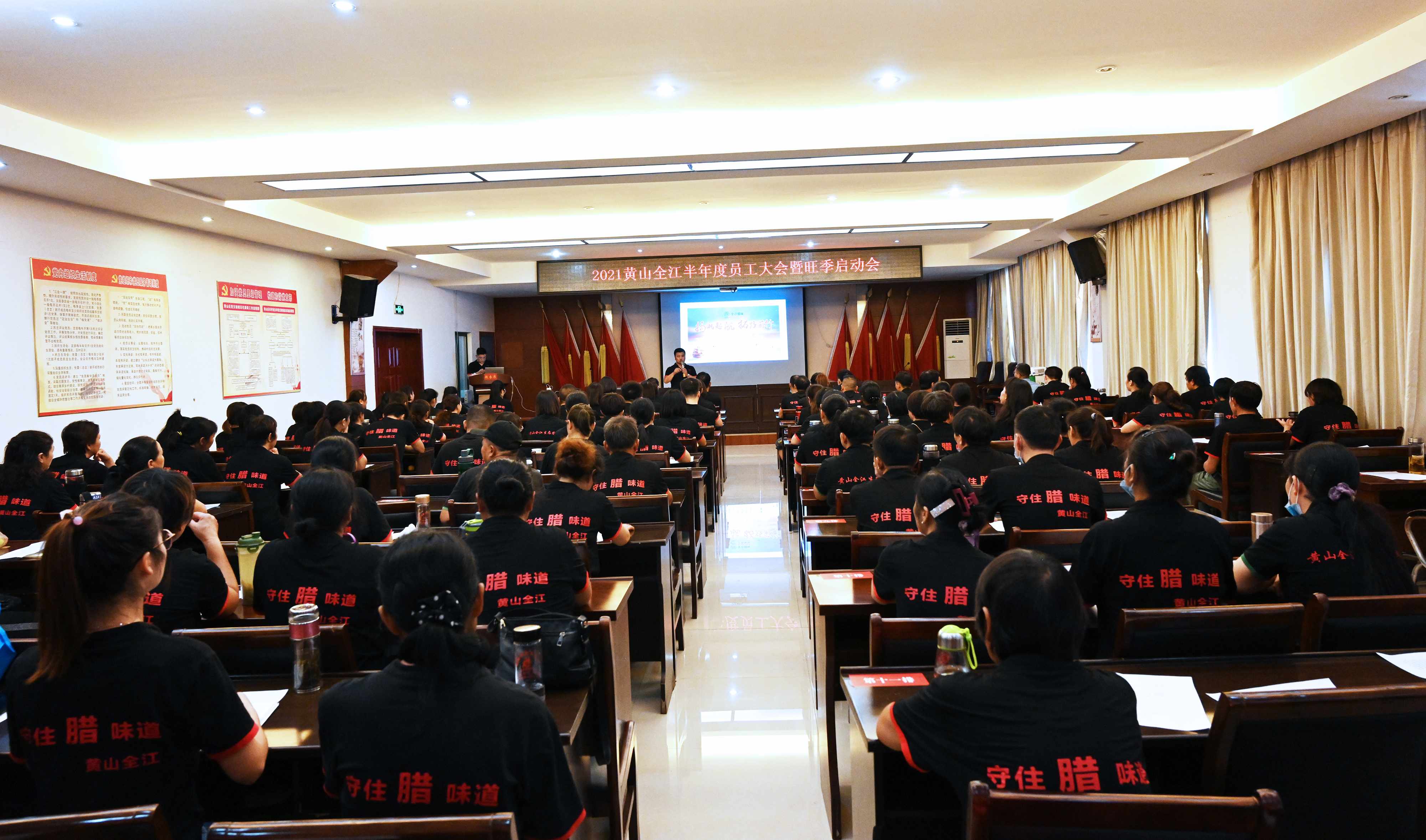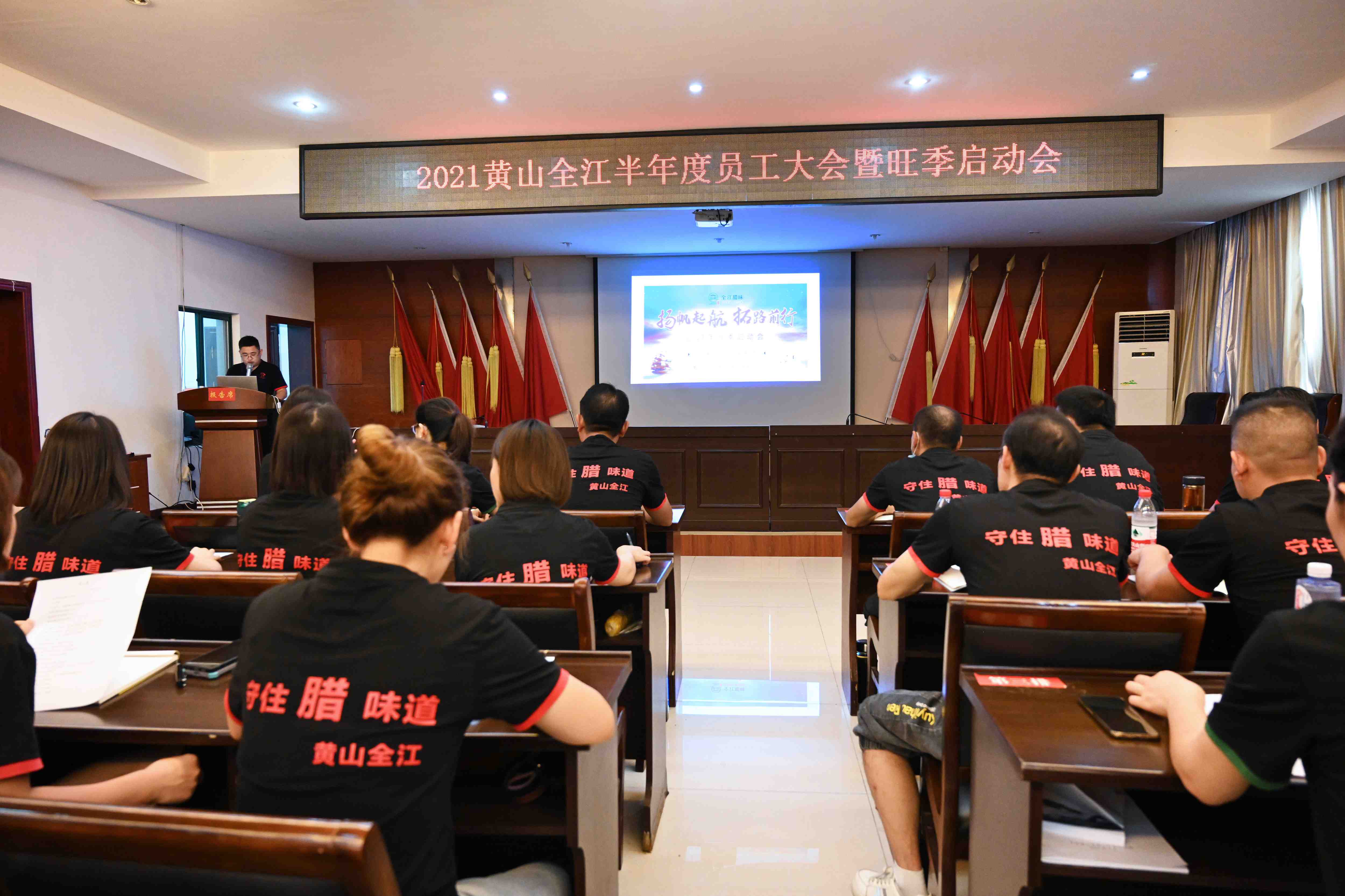 临近年底,腊味的旺季已经闪亮登场,愈演愈烈的腊味产品供求大战拉开序幕。2021年9月20日下午,黄山全江所有领导及员工开展了一场蓄力充电的“2021旺季启动会”,为即将到来的旺季服务吹响奋战的号角。