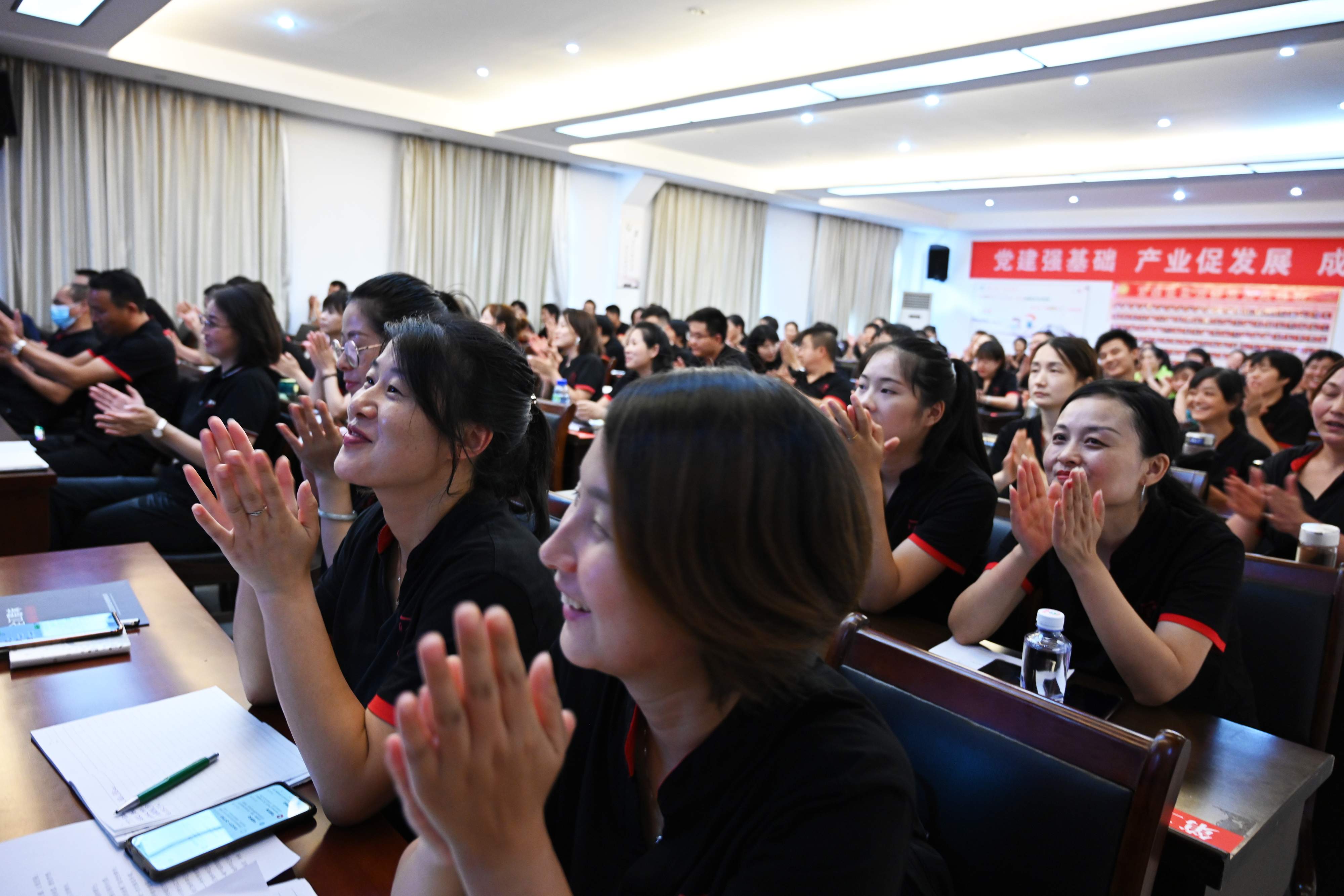 3、全江的每位家人都要有以五颗心(大爱之心、责任心、敬畏心,包容心,感恩的心),三个思维(正向思维、逆向思维、结果思维),为出发点,遇到任何事要从正能量出发,先往正面去想,所有的坏事到最后都是好事。江总并通过自己的亲身经历案例和“火车与高铁的故事”,倡导全江人同步跑,只有每个人都提升,全江才能在腊味行业里成为皎皎者。