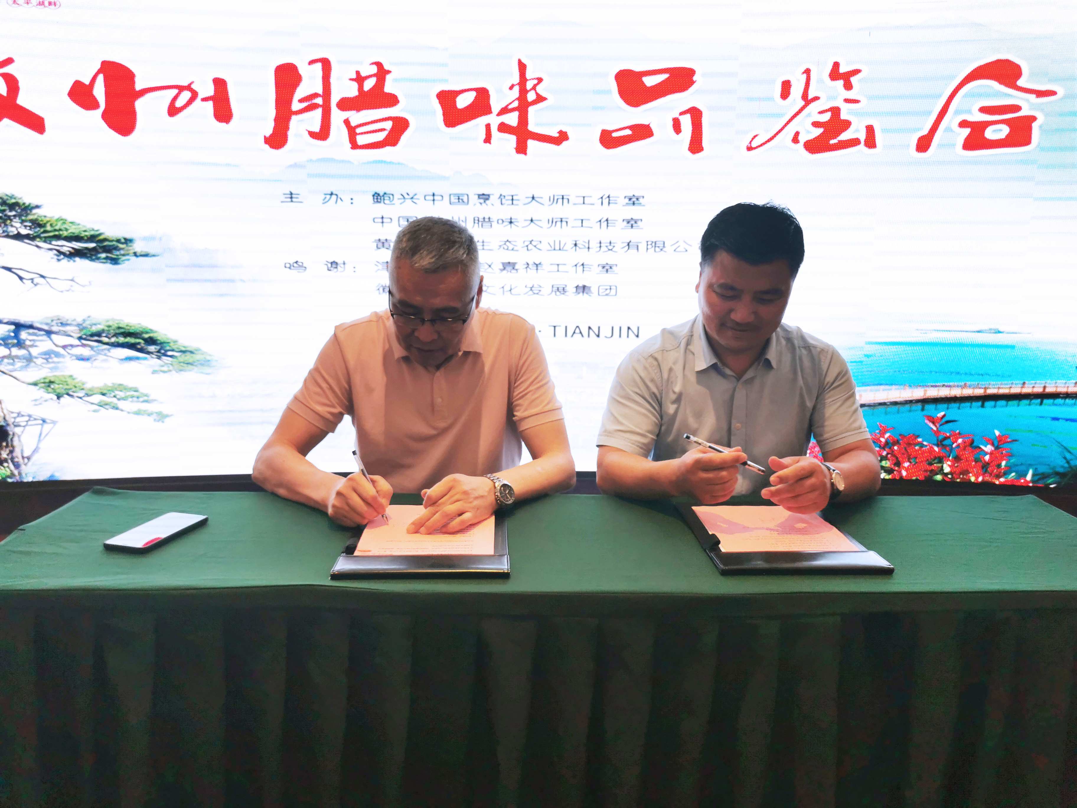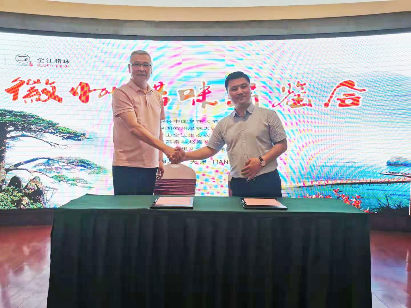 黄山全江生态农业科技有限公司董事长 江礼明天津永福日盛食材总经理 杨韧全江腊味天津市年度经销战略合作协议 现场签约