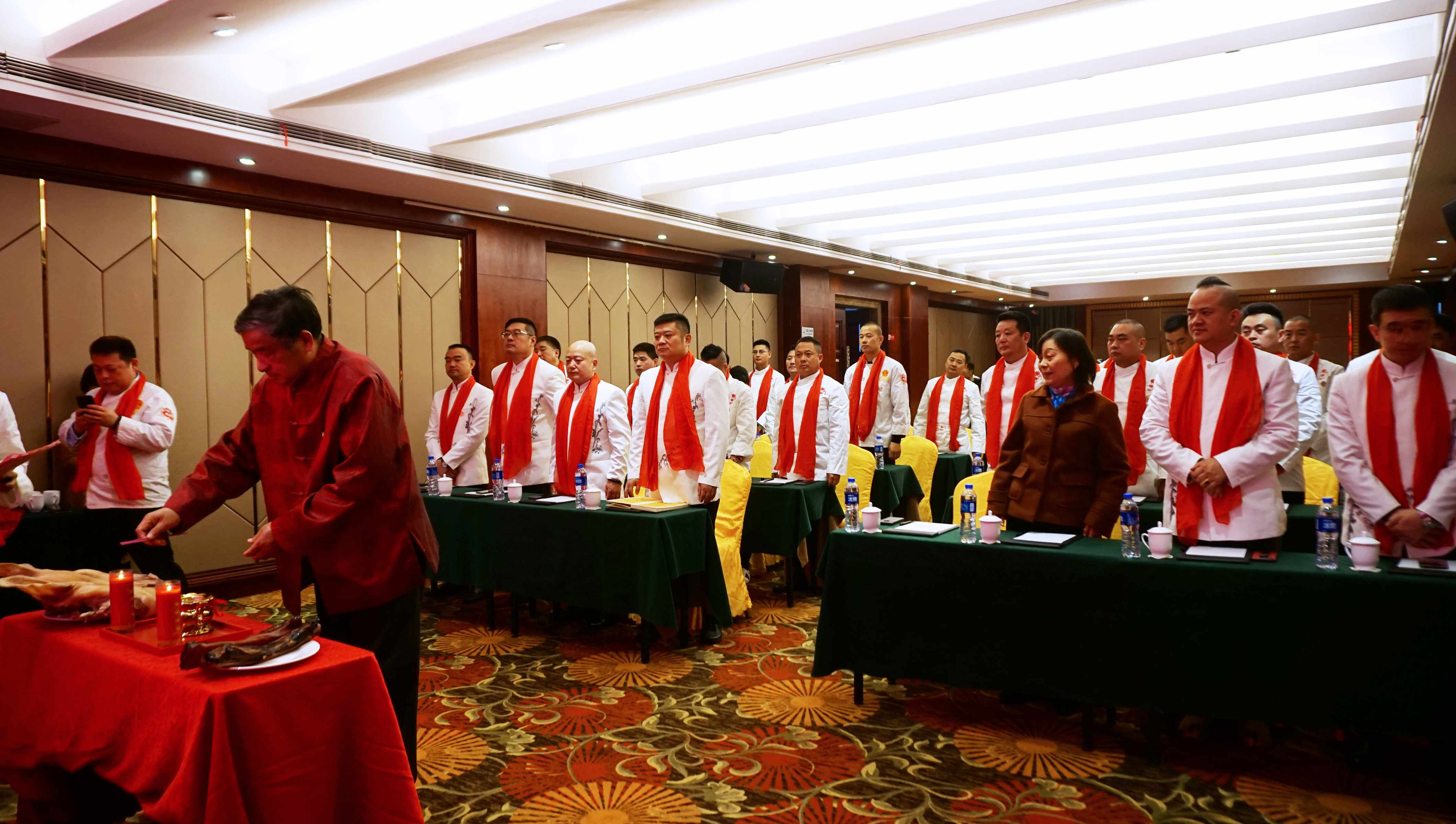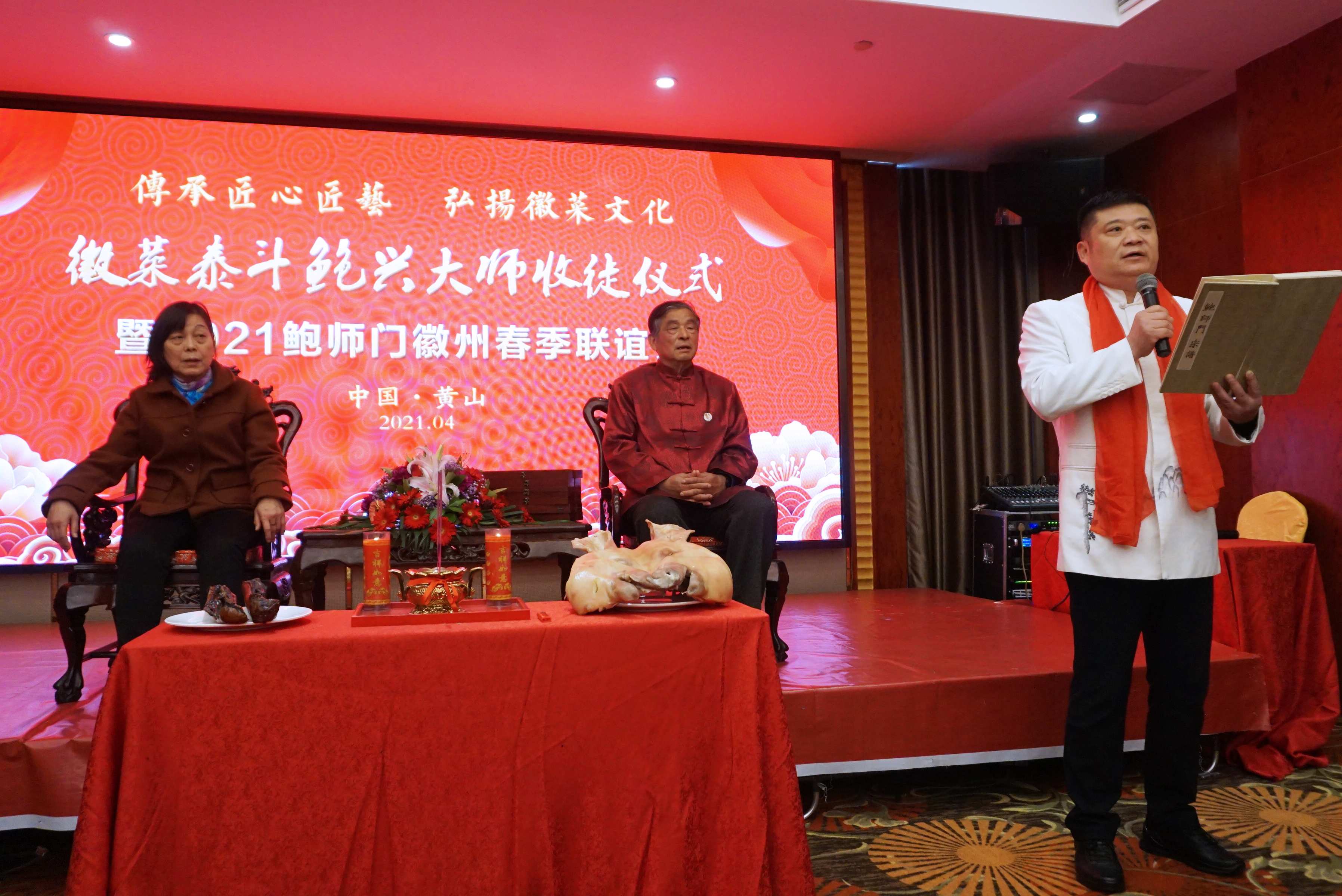 为传承徽厨匠心匠艺,弘扬徽州饮食文化,徽菜泰斗鲍兴大师收徒仪式在安徽黄山太平国际大酒店隆重举行。来自全国不同城市的三十多位弟子参加了收徒仪式,各代徒弟陆续盛装到场。