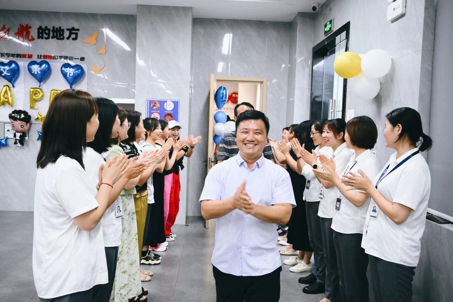 在晚上的活动开始前,行政部门和后勤部所有小伙伴,提前来到一楼食堂布置现场、摆放餐桌,节目彩排,希望给全江的爸爸们一个最大的惊喜!